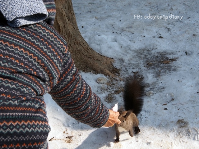 ระหว่างทางมี “กระรอกฉอเลาะ” ที่เชื่องราวกับลูกหมา วิ่งปรู๊ดดดดเข้ามาขออาหารเป็นระยะ