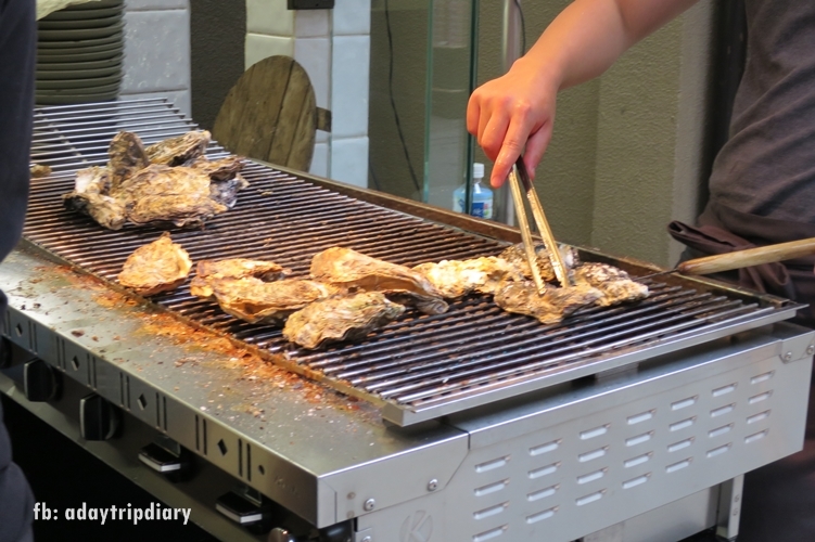 เมนูที่เราชอบมาก (แต่ต้องสั่งแยก เพราะไม่มีในเซ็ตเมนู) ก็คือ “หอยนางรมย่าง” ย่างกันหน้าร้านนั่นเอง