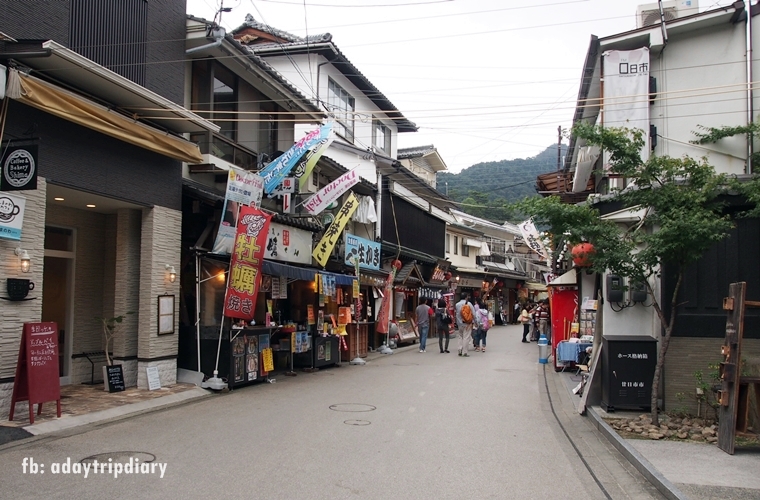 ความสนุกอีกอย่างของการมาเที่ยวมิยาจิม่า ก็คือการเดินดูร้านขนม ของกิน ของฝาก ของที่ระลึกต่างๆ บนถนนเส้นเล็ก