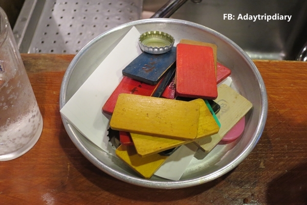 วิธีคิดสตางค์ก็คือเอาป้ายของที่เรากินใส่รวมๆ กันไว้ในจานด้านหน้า