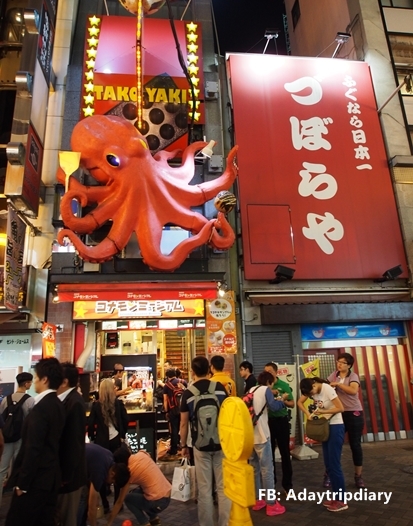 เราเดินล่องไปตามถนนขาปูขยับได้ เกี๊ยวซ่ายักษ์ กูลิโกะ ฯลฯ เพื่อหาอาหารเย็นกิน