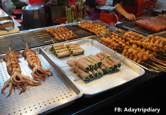 ที่สำคัญคือแต่ละร้านขายอาหารที่เล็กๆ เช่นไม้เดียวก็ขาย ทำให้เรากินได้หลายอย่าง