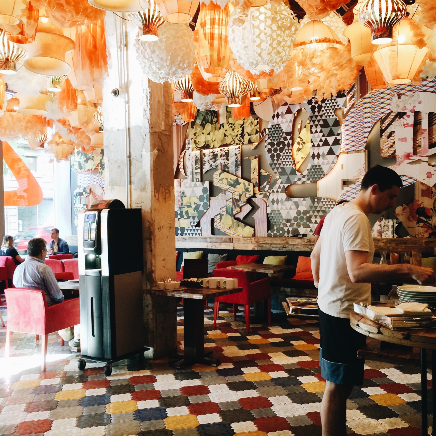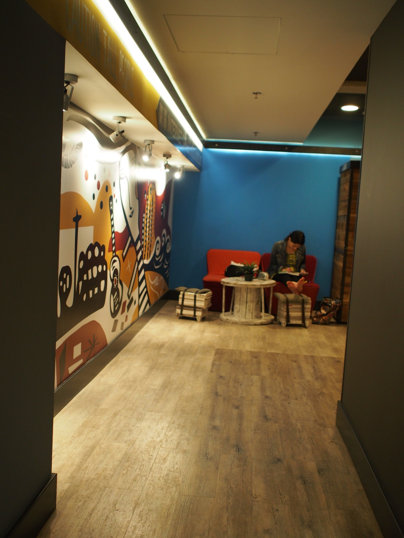 แถมโฮสเทลเขาแต่งสนุก เดินดูเล่นๆ ยังชอบเลย หิวน้ำก็มีตู้กดอยู่ที่ชั้นลอย