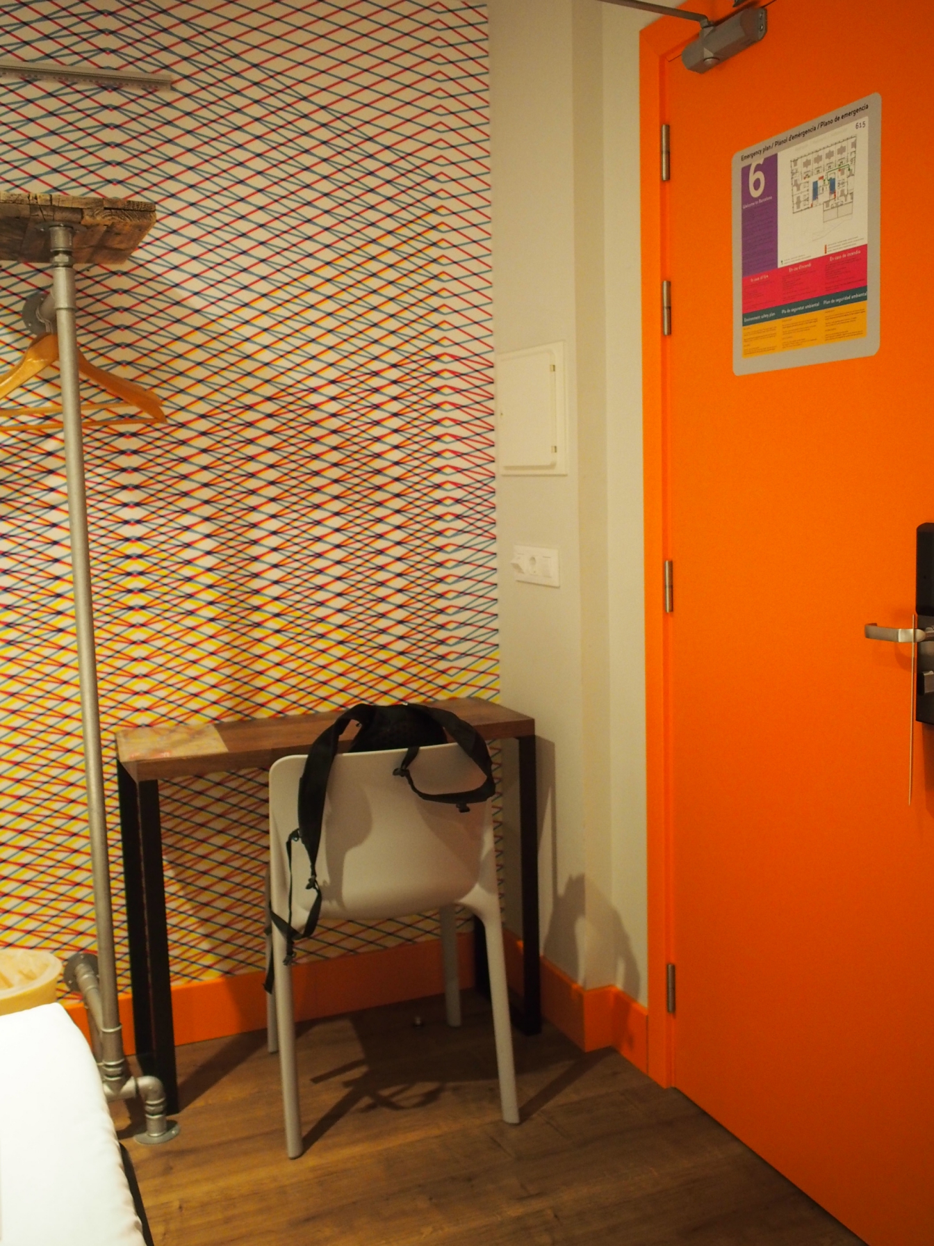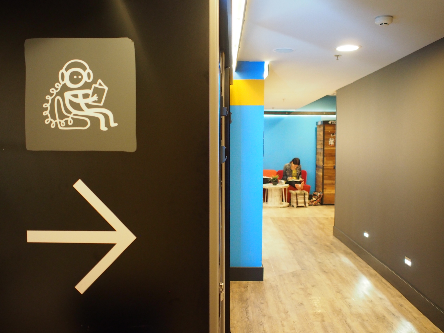 ที่นี่แบ่งทางเข้าเป็น 2 ส่วนคือ hostel กับ hotel จะขึ้นห้องได้ต้องเสียบการ์ดที่ลิฟต์ก่อน