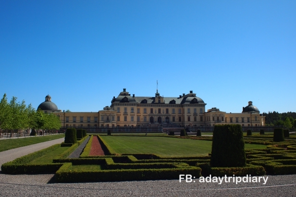 นั่งเรือ 45 นาที เราก็มาลอยลำตุ๊บป่องอยู่หน้าพระราชวังดรอตต์นิงโฮล์ม (Drottningholm Slott)