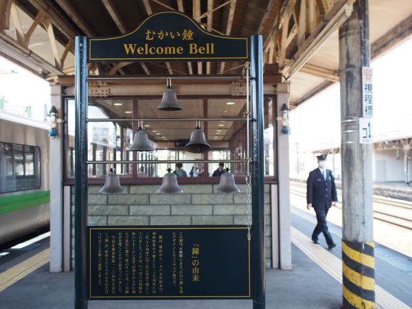 เป็นสถานีที่น่ารักมาก มีรายละเอียดเก่าๆ ที่เขายังรักษาเอาไว้ เช่นโคมไฟติดเสา ม้านั่งแบบเก่า ชานชาลาวินเทจ ตะเกียงโบราณ และระฆังเวลคัม! ดิฉันยืนถ่ายรูปเพลิน จนออกจากแพลตฟอร์มเป็นคนสุดท้ายชะเอิงเงิย จะไม่เก่าแก่ได้ไง ในเมื่อที่นี่คือสถานีรถไฟแรกของสายฮอกไกโด