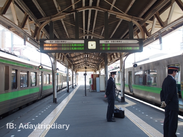 เราพักที่ซัปโปโร และใช้วิธีเที่ยวแบบเดย์ทริปด้วยการจับรถไฟไป ใช้เวลาราวครึ่งชม. ก็ถึงโอตารุ รถไฟไปโอตารุมีมากมายหลายแบบ ทั้งแบบ Rapid และแบบหวานเย็น ที่สถานี มีพนักงานคอยให้ความช่วยเหลือ ดูเวลารถออกและแพลตฟอร์มที่ต้องขึ้น ทำให้รู้สึกมันง่าย เร็ว และสบายมากๆ