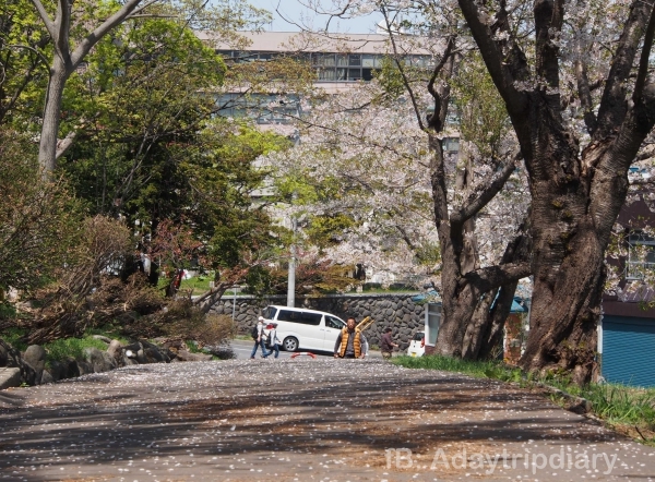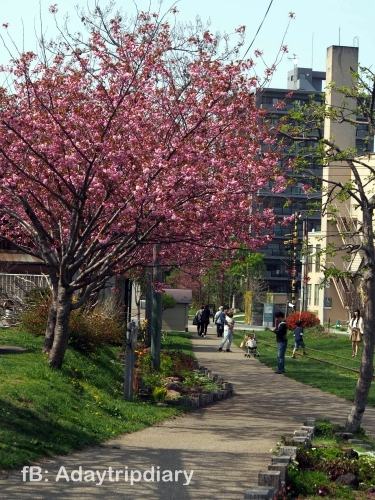เป้าหมายของการมาสวนโอตารุก็เพื่อดูซากุระ ซึ่งเพิ่งเข้าใจเหมือนกันว่าพันธุ์มันแตกต่างกันออกไปในแต่ละที่ กลีบดอกก็ต่างกันด้วย ของที่นี่จะกลีบดอกเล็ก สีอ่อน เวลาลมพัดมาที กลีบจ้อยๆ ของมันก็พร้อมใจกันปลิวพรูพลิ้วไปตามกระแส ยัยหญิงไทยคนนี้ก็ได้แต่กรี๊ดกร๊าดมองอย่างเป็นสุข จำได้ว่าใช้เวลาตรงทางเข้าสวนราวๆ เกือบ 20 นาที เพราะแค่ยืนมองก็สุขีสโมสรแล้ว น่าเสียดายเนาะที่ซากุระพวกนี้ปีๆ นึงบานแค่ไม่กี่สัปดาห์…ที่เหลือก็กลายเป็นต้นไม้ใบเขียวๆ ก็ต่อไป…