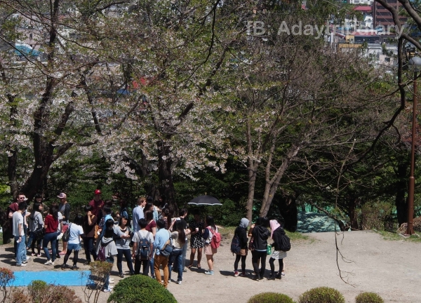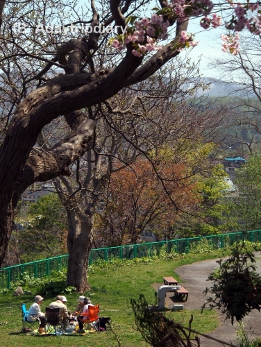ทางเดินในสวนโอตารุจัดว่าง่ายค่อนข้างมาก เส้นทางดีมีขึ้นนิด ลงหน่อย พอให้กล้ามเนื้อทั้งไบเซปและไตรเซปได้ทำงานถ้วนหน้า วันที่เราไป มีชาวญป.มาฮานามิกันพอประมาณ คนน้อยอย่างน่าอัศจรรย์ มีเด็กรวมกลุ่มกันมาเดินเที่ยวชมซากุระ บางกลุ่มเอาเตามาย่างเนื้อสร้างความทรมานใจให้กับผู้คนในวงกว้าง เราอยู่ห่างมา 200 ม.ยังได้กลิ่นอยากไปร่วมแจม T^T บางคนก็เอาหม้อมาต้มสุกี้กันเป็นกิจจะ โห…เขาสนุกกันแบบนี้เอง เราเคยนึกว่าคนจะห่อแต่อาหารเย็นๆ พวกข้าวกล่อง แซนวิช ผลไม้ อะไรง่ายๆ มากินกันซะอีก อันนี้จัดหนักกันเลยอ่ะ