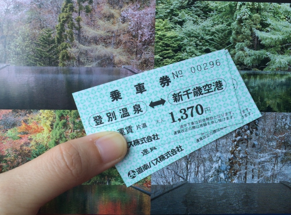 เราซื้อตั๋วล่วงหน้า 1 วัน เพราะมันอยู่ตรงข้ามกับโรงแรมที่พักพอดี แพ็คกระเป๋าเช็กเอาต์ ต้องหอบหิ้วมันไปด้วย เพราะวางแผนว่าออกจาก Noboribetsu แล้วจะไปสนามบินชิโตเสะเลย กระเป๋าไม่มีช่องใส่ไต้รถ ให้แบกขึ้นไปด้วยแล้ววางแหมะบนเบาะที่นั่งแรกๆ ได้เลย อย่าวางบนตักตัวเอง…มันหนัก!!!