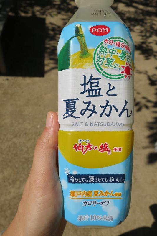 เราพบว่าน้ำยี่ห้อ POM ส่วนใหญ่อร่อย รสนี้ก็ชอบมาก natsudaidai เป็นส้มโลคัลของ Ehime ดื่มแล้วสดชื่นกลมกล่อมกำลังดี ติดใจและชอบมาก ถึงจะมีคำว่า Salt แต่ไม่ได้มีรสเค็มจัด ได้มาจากตู้กดตรงทางเข้า Matsuyama Castle (ซึ่งราคาแพงกว่าตู้กดทั่วไปราว 50 เยน)