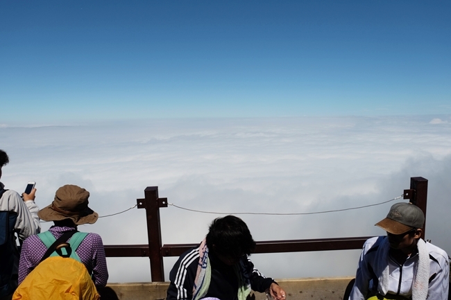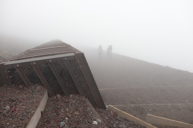 ส่วนตัวรู้สึกว่าทางช่วงนี้เป็นเหมือน “อุโมงค์วาร์ป” ที่พาเราจากพื้นดิน ขึ้นสู่ยอดเขาฟูจิ เพราะต้องเดินท่ามกลางหมอกปกคลุมหนาแน่น คล้ายหนังเรื่อง Silent Hill แบบแทบไม่เห็นทางข้างหน้า (ตอนนั้นที่นึกอะกลัวนะ แต่มันเหนื่อยเกินกว่าจะมาคิดกลัว) ที่ตอนหลังรู้ว่ามันคือกลุ่มเมฆที่จับตัวกันบนยอดเขานั่นเอง