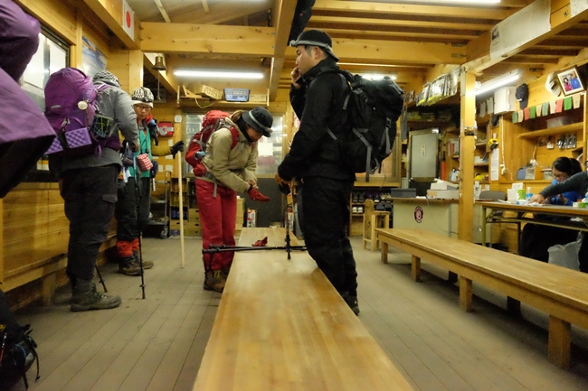 อากาศข้างนอกเย็นเยือกแล้ว แต่ในฮัทอุ๊นอุ่นเพราะมีฮีทเตอร์ ที่นอนอยู่บนชั้น 2และ3 คนมาพักฮัทนี้กันเป็นหลักร้อยคนทีเดียว ลักษณะที่นอนเป็นถุงแด้พร้อมผ้าห่มฟลีซหนาอุ่น หมอนนุ่ม 1 ใบ และขอเกี่ยวเป้ตรงหัวนอนซึ่งมีป้ายบอกเลขล็อกแด้ของเราด้วย เนื่องจากเขาปูแด้ติดกันเป็นพรืด เลยจัดให้คนมาเป็นคู่อยู่ชั้นล่าง คนมาเดี่ยวๆ หรือกลุ่มอยู่ชั้น 2 (คล้ายเตียง 2 ชั้น) แล้วจัดให้หญิงนอนข้างหญิง ชายนอนข้างชาย…ช่างเป็นอะไรที่รอบคอบ สมความเป็นญี่ปุ่นจริงๆ อยากไหว้นะจุดนี้