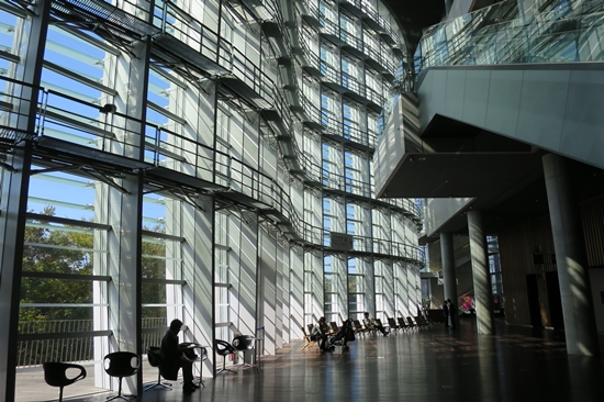 จริงๆ ไม่ได้กะเข้าไปดู คือว่าจะเดินผ่านไปสวนที่อยู่ติดๆ กันแค่นั้น ปรากฎพอเห็นตึกแล้วรู้สึกชอบ ยิ่งมีแบ็คดร็อปเป็นต้นสนเหมือนอยู่เมืองนอก! (บูสะกิดว่า เอ็งอยู่เมืองนอกอยู่แล้ว…อ่ามก็แบบ ยุโรปไงๆ) มารู้ตอนหลังว่าอาคารออกแบบโดยสถาปนิกญี่ปุ่นชื่อ Tadao Ando ซึ่งเป็นสถาปนิกที่เริ่มต้นงานจากการเรียนรู้ด้วยตัวเอง (กราบ 10 ที) แถมอาชีพแรกๆ ในชีวิตคือนักมวยและคนขับรถสิบล้อ! (กราบอีก 20 ที) สิ่งนี้พิสูจน์ให้เห็นว่า ถ้าเราตั้งใจจริงและไม่ย่นย่อ ความสำเร็จก็ต้องมาถึงในสักวัน