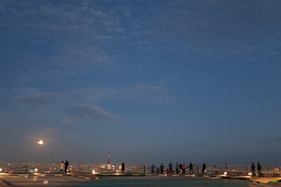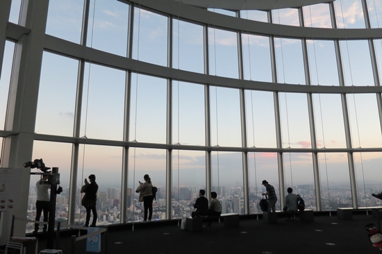 หรือเราจะเลือกไป Sky Deck แทนก็ได้ เสียแค่ 500 เยน ส่วนตัวเราว่า sky deck วิวแจ่มกว่าเยอะ เพราะสูง 270 เมตรไม่มีกระจกบัง เสียแต่ลมแรงมากกกกก หัวหูกระเจิง ยืนนานหนาวตาย บนนั้นเป็นแค่ลานกว้างๆ บนยอดตึก ไม่มีเก้าอี้ใดๆ ให้นั่ง อยู่แป๊บๆ ตอนพระอาทิตย์กำลังจะตกน่ะได้ แต่ถ้าอยากอยู่ยาวๆ นั่งดูอาทิตย์ลับขอบฟ้าแบบโรแมนติกคุยมุ้งมิ้งสบายๆ ล่ะก็ ไม่แนะนำอย่างยิ่ง ก่อนขึ้นไปเค้าจะให้เราเอาของทุกสิ่งยกเว้นมือถือและกล้องถ่ายรูป ทิ้งไว้ที่ล็อกเกอร์ก่อน (หยอดเหรียญ 100 เยนแต่ได้คืน) ตอนแรกก็ไม่เข้าใจว่าทำไม แต่พอขึ้นไปแล้วเกือบโดนลมพายุพัดปลิวจึงถึงบางอ้อ