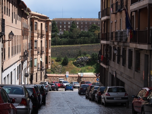 เดินขึ้นเนินผ่านแนวตึกเหล่านี้มา