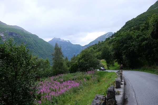 September 26, 2017 นอร์เวย์ day 5: Geiranger ตัวเมือง 600 × 400 DSCF5400 ทางเดินลงเขาจากรร.เข้าเมือง Geiranger, Norway.