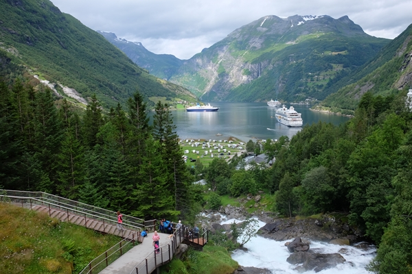 September 26, 2017 นอร์เวย์ day 5: Geiranger ตัวเมือง 600 × 400 DSCF5416 ทางเลียบน้ำตกเข้าเมือง Geiranger Norway.