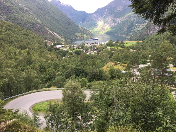 September 26, 2017 นอร์เวย์ day 5: Geiranger ตัวเมือง 600 × 450 IMG_6517 ทางเดินลงเขาจากรร.เข้าเมือง Geiranger, Norway.